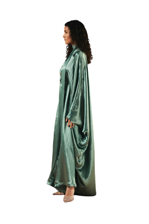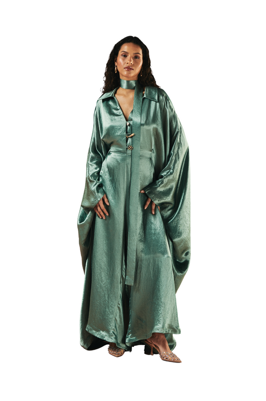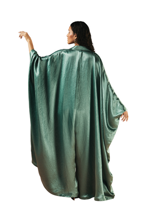 If you're not much of a dress person, or simply want something a little different, this kaftan jumpsuit couldn't be more perfect. Sewed from emerald heavy satin, it has a v-neck detailed with a signature 1309 buttons